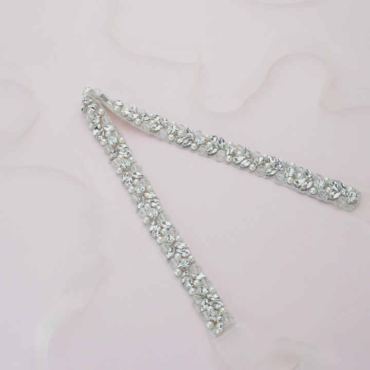Isla Crystal Belt B119S comes in the following Sash Type: Satin Ties-Off White, Organza Ties-Off White and Custom Length Wrap Around Belt with Clasps.